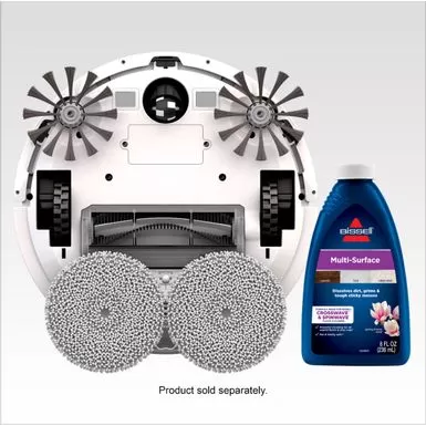 BISSELL SpinWave wet and dry robotic vacuum provides two ways to clean in a single revolutionary robot. The two tank system actively mops or powerfully vacuums with smart structured cleaning paths. Use it in dry vacuuming mode to collect pet hair dirt and other debris on carpet area rugs and hard floors. When used in wet mopping mode the mop pads and BISSELL cleaning solution work together to scrub floors clean. And with the Soft Surface Avo