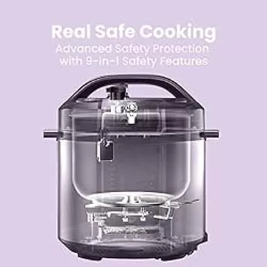 - Advanced Safety Protection with 9-in-1 Safety Features- Lid lock, anti-block cover, pressure limiting valve, automatic pressure and temperature control, overheat protection and more. UL certified.