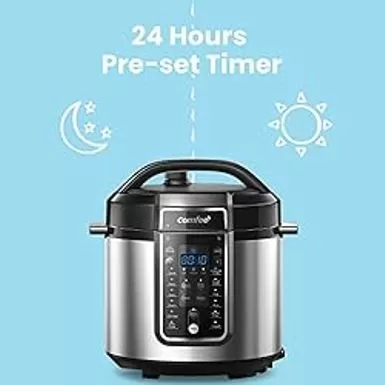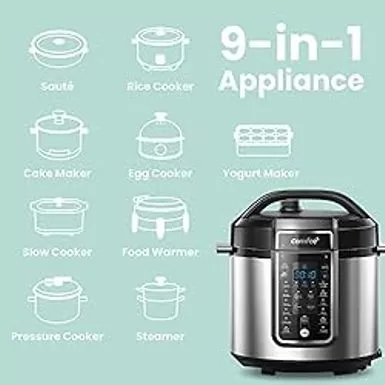 COMFEE Pressure Cooker 6 Quart with 12 Presets, Multi-Functional Programmable Slow Cooker, Rice Cooker, Steamer, Saut pan, Egg Cooker, Warmer and More