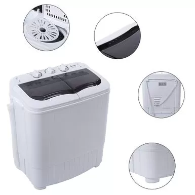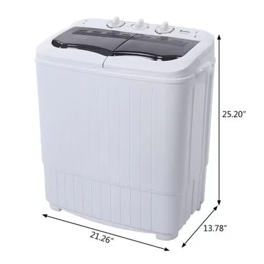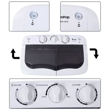 Introductions: A washing machine is common in each household. Today we are pleased to recommend this ZOKOP XPB35-ZK35 14.3lb Elution Integrated Semi-automatic Gray Cover Washing Machine to you. Introductions:A washing machine is common in each household. Today we are pleased to recommend this ZOKOP XPB35-ZK35 14.3lb Elution Integrated Semi-automatic Gray Cover Washing Machine to you. This semi-automatic twin tube washing machine is an indispensable machine for your daily life. It can help you to wash dirty clothes quickly. With the first-grade material, it doesn’t break your clothes during laundry. And it can keep your clothes as new! It is a very useful gadget for each household. Come to get one back home! Features: 1. Mini and compact size with large power 2. Large washing bucket washing dewatering cylinder for its upgrade quality 3. New and high quality 4. Help to wash clothes quickly 5. 14.3(7.7 6.6) lb 240W rated washing capacity, it can wash a lot of clothes at the same time 6. Fine workmanship without noise 7. Washing and dehydration functions can be used at the same time 8. The drain pipe and inlet pipe are extended to 1.1M 9. Built-in drain pump drains dirty water by more longer drainage tube from washer.More easier, suitable for most family. Easy storage and space saving design. Specifications: 1. Model: XPB35-ZK35 2. Power Supply: 110V/60Hz 3. Rated Washing Capacity: 7.7Lbs 4. Rated Spin Capacity:6.6Lbs 5. Rated Wash Input Power: 240W 6. Rated Spin Input Power: 120W 7. Total Power: 360W 8. Color: Gray 9. Dimensions: (22.83 x 14.72 x 26.38)” / (58 x 37.4 x 67)cm (L x W x H) 10. Weight: 11kg / 24.25lb 11. Material: Plastic 12. Plug Type: US Standard 13. Motor Speed: 1300rpm/mins Package Includes: 1 x Washing Machine with Built-in Drain Pump 1 x Water Inlet 1 x Drain Pipe