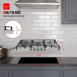 GASLAND Chef 36” Gas Rangetop NG Pro RT3606- 120V,6 Deep Recessed Sealed Burners, Continuous Cast Iron Grates,Re-ignition – Silver
