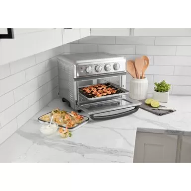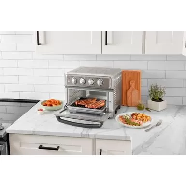 Cuisinart’s signature AirFryer just got even better! In addition to AirFrying french fries, baking cookies or warming up your leftovers, now you can make even more delicious meals in your Cuisinart AirFryer Toaster Oven with Grill! Sear steaks and vegetables on one side and griddle the perfect breakfast on the other with the new dual-sided grill and griddle plate. Bring next-generation cooking to your countertop with the spacious 8-function oven that makes cooking a feast for family and friends — or a simple snack for one — fun, fast, and easy!