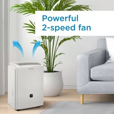 - 30 Pint (14.6 L) Dehumidifier: controls humidity in spaces up to 2000 sq. ft.