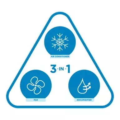 - Convenient 3-in-1 design: air conditioner, fan, and dehumidifier