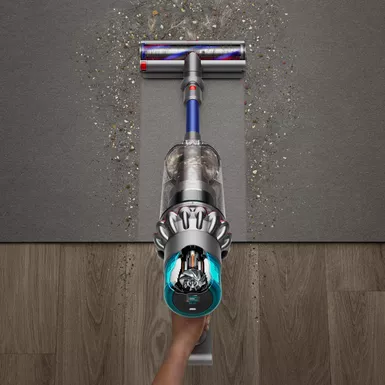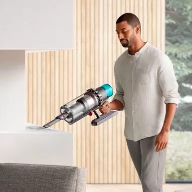 The cordless Dyson Gen5outsize has the suction power of a corded vacuum.¹ It has HEPA filtration for our deepest, most hygienic clean. It’s engineered with the larger size, power, intelligence, and additional run time to deep clean larger spaces. It has a 25% wider cleaner head and 150% larger bin compared to the Dyson Gen5detect, as well as twice the run time. The Dyson Gen5outsize covers more floor with each pass and allows for more cleaning between bin emptying and charges. It intelligently optimizes suction power based on floor type and debris picked up.⁵ The LCD screen indicates when to keep cleaning an area and when to move on. The Fluffy Optic cleaner head reveals invisible dust on hard floors. The extra wide de-tangling Digital Motorbar XL cleaner head deep cleans carpets and hard floors without tangles. Its versatile cordless format transforms into a handheld vacuum with one click, and the wand detaches to reveal a ready-to-go tool for continuous cleaning. Comes with a 2-year warranty and lifetime Dyson support.