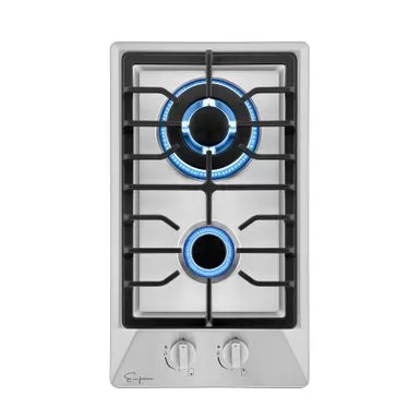 Complete your modern kitchen space with this high-quality compact cooktop from Empava. This gas cooktop features one Dual Ring 11,500-BTU burner and one small, simmer burner. The heavy-duty cast iron grates and the removable knobs are dishwasher safe for easy cleaning.