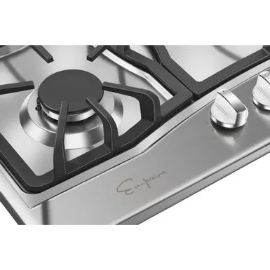 33.8″ Cooktop with knobs front mounted, tempered glass panel, flame out protection device, electric pulse ignition, power supply option: 110V five burners stove, triple ring burner 11942 BTU x 1, rapid burner 10236 BTU x 1, semi rapid burner 5971 BTU x 2 33.8″ Cooktop with knobs front mounted, tempered glass panel, flame out protection device, electric pulse ignition, power supply option: 110V five burners stove, triple ring burner 11942 BTU x 1, rapid burner 10236 BTU x 1, semi rapid burner 5971 BTU x 2, auxiliary burner 3412 BTU x 1, product: 33.86″ x 19.69″ x 4.33″ cut out dimension: 32.87″ x 18.7″. The Empava gas cooktop offers you the flexibility you need to make all your favorite dishes with precision and flair. The recessed cooktop burners provide an easy space for balancing multiple pots, while the bridge burner fits everything from multiple small sauce pans to oversized griddles or grill adapters. You can use the inner ring of the dual ring burner to simmer soups or dial up the power with the outer ring to bring water to a quick boil with 11,942 BTUS. Then, to make cleanup a breeze, all of the removable grates are dishwasher safe. Designed to power you through dishes large and small, 11K BTU burners deliver heat for a wide range of cooking options, so you can simmer, sear, warm and boil all in one spot. Built to cut down on soaking and scrubbing, dishwasher safe grates deliver a stable surface for cooking, while cleaning up quickly alongside your pots and pans. Speed through post-cooking cleanup thanks to a glass panel cooktop surface that helps contain spills, resist scrapes and wipes clean quickly.