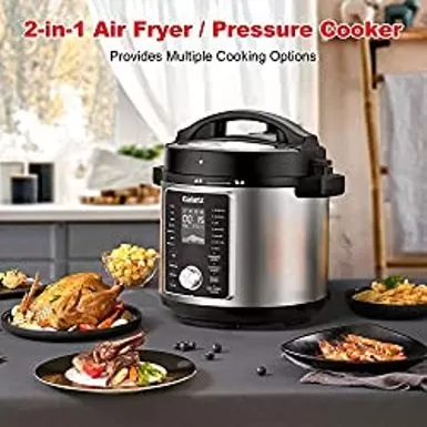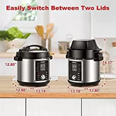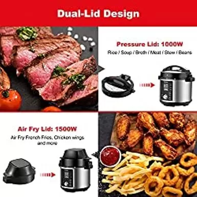 - [2 Removable Lids]This Electric Pressure Cooker and Air Fryer is equipped with 2 removable lids – an air fry lid and a pressure cook lid, which make it easy to switch between an air fryer, pressure cooker, slow cooker or steamer.