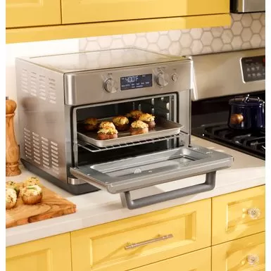 At GE Appliances, we bring good things to life by designing and building the world’s best appliances. Our goal is to help people improve their lives at home by providing quality appliances that were made for real life. Whether it’s enjoying the tradition of making meals from scratch or tackling a mountain of muddy jeans and soccer jerseys, products from GE Appliances are crafted to support any and every task in the home. Now that quality you’ve come to love is available right on your countertop thanks to toaster ovens with hot air frying technology built right in. These multifunction toaster ovens have all the regular features your family loves, plus air frying capabilities and accessories for a healthier, cleaner alternative to traditional frying. Electric controls allow you to adjust the toaster oven to your exact settings based on your preferences. You’ll love the stainless steel finish which seamlessly blends with any kitchen and the easy-clean accessories such as a crumb tray and perfect-fit baking pans. All of this from the brand you trust most – GE Appliances.