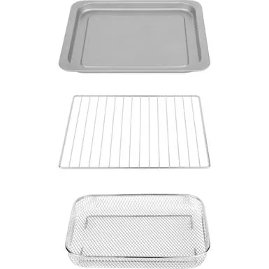 - Always have the right-sized cookware to fit your toaster oven thanks to an included accessory kit that includes a rack, baking pan, and air fryer accessories.