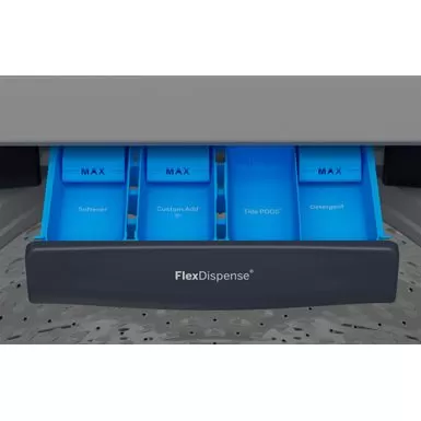 - Dedicated dispensers for detergent, detergent packs like Tide PODS, fabric softener and other common additives speed up activation and optimize cleaning performance