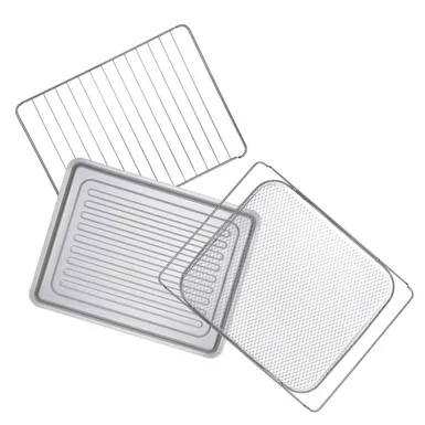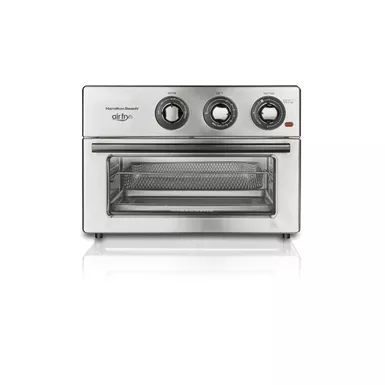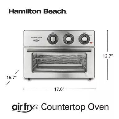 Convenient appliance that not only air fries but does everything you want in a countertop oven. Air Fryer circulates hot air around food with little to no oil. 6 Functions: Air Fry Toast Bake Broil Convection Bake Stay-o. 30-Minute shutoff timer. Adjustable temperature 150F-450F. Slide-out crumb tray. Spacious oven prepares meals for families of any size. Dimensions: 12.7″H x 17.6″W x 15.7″D. Includes: Mesh basket. Baking pan. Broil rack.