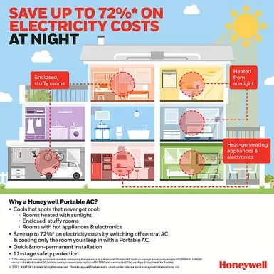 - Cools rooms up to 400 sq. Ft. (Temperature range 61F to 89F).