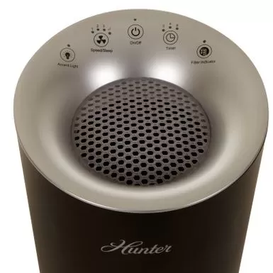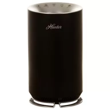 Improve your indoor air quality in style with the latest from Hunter. The AirX air purifier from Hunter can clean the air in a 98 sq. ft. room 4.8 times each hour – that’s over 115 times every day! It also features a 3-stage filtration process that is ideal for allergy and asthma symptom relief. The 3 – stage filtration process begins as soon as the air enters the machine, where it first passes through the EcoSilver pre-filter. The EcoSilver pre-filter utilizes silver nanoparticles to prevent the growth of bacteria and viruses. It also includes natural coconut carbon which neutralizes harmful VOCs (volatile organic compounds) and household odors caused by cooking, cleaning, smoking, and pets. The air then passes through a HEPA filter where up to 99.97% of airborne particles as small as 0.3 microns in size are trapped. These tiny airborne particles can include smoke, pollen, dust, pet hair and dander, mold spores and dust mite debris. It’s recommended to change the HEPA filter every 6-12 months and the pre-filter every 3 months for maximum efficiency, or more depending on air quality and environmental factors. The compact size makes the AirX ideal for a small bedroom, bathroom, kitchen, counter, office, travel, camper, or hotel room. The soft-touch digital control panel makes it easy to control the settings. Additional features include 3 different fan speeds, so you get the cleaning power you want when you want it. Also, sleep mode with whisper-quiet operation for uninterrupted sleep, a filter replacement indicator to remind you when it’s time to change the filters, and optional LED accent light for ambiance or nightlight.