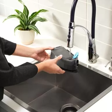 - Just fill the Roomba Combo Bin with water or a compatible cleaning solution* and the specialized microfiber pad tackles footprints, dirt, and dust. *See iRobot website or list of compatible cleaning solutions