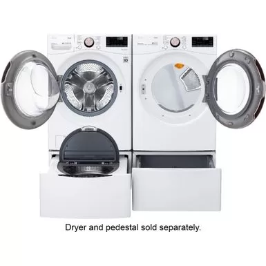 - Wash small loads that can’t wait or two loads at once with the LG SideKick Pedestal Washer (sold separately).