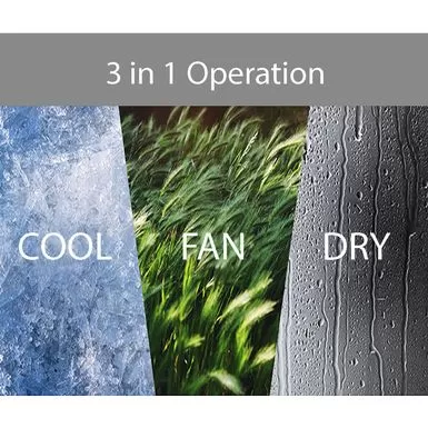 This portable air conditioner is a great choice for versatile cooling! This quiet unit is ideal for cooling medium rooms up to 250 sq. ft. The unit has 2 cooling and fan speeds and a 24 hour timer to create a cooling schedule. The auto-swing air vent helps direct the flow of air where it’s needed most whether cooling, dehumidifying or just circulating air. If there is a power outage, the auto restart feature will automatically turn your unit back on when power is restored. Easy rolling casters allow you to efficiently move the unit to another location. Other features include an LCD remote control, easy window venting installation kit, removable/washable filter and a check filter alert.