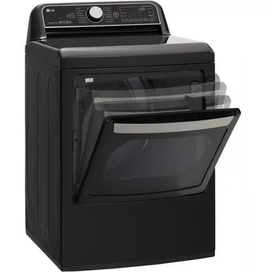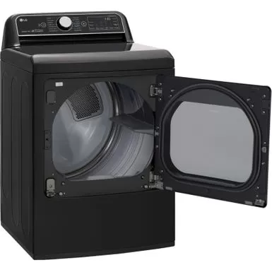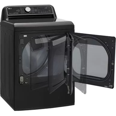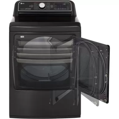 - The dual-opening options of the LG EasyLoad door make loading and unloading the dryer easier than ever. Transferring wet clothes from the washer? Simply press the release button and pull the door down, hamper style to keep that stray sock from hitting the floor.