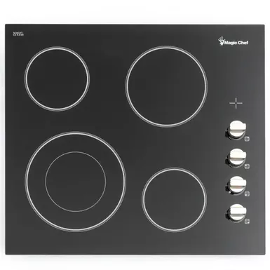 - 24″ radiant cooktop offers a smooth surface for quick and easy cleaning