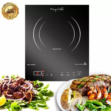 The Megachef portable 1400W Single Induction Countertop Cooktop is specifically designed for easy and convenient use. It functions with a simple yet accurate digital touch control panel on an easy to clean flat ceramic glass surface. The Megachef portable 1400W Single Induction Countertop Cooktop is specifically designed for easy and convenient use. It functions with a simple yet accurate digital touch control panel on an easy to clean flat ceramic glass surface. Additionally, this appliance is a safer and more efficient alternative to traditional cooking methods. The induction technology greatly reduces the risks of burning and fire associated with gas or electric cooktops, and is highly energy-efficient. Furthermore, because it uses electromagnetic fields to create heat, the induction burner heats up faster than its counterparts, making it an all-around must-have!Includes One Induction Countertop Cooktop (14″ x 11″ x 2.5″ – 5.65 lbs.)This counter top range unit is 100% portable and can be placed wherever there is an outlet, which renders it ideal for camping, barbecues, tail gate parties, or other special occasions.LED displayCeramic glass surfaceRequires induction compatible cookwareThe magnetic fields generated during operation may lead to adverse effects.