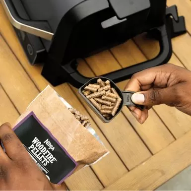 - Comes with 2 blends of 100% real hardwood Ninja Woodfire Pellets that pair great with anything you make. Used as flavor, not fuel so you only need 1/2 a cup.