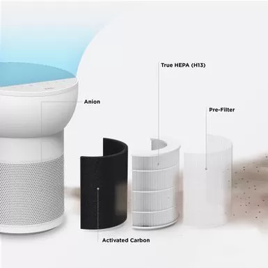 - Features pre-filter, True HEPA (H13), activated carbon, and anion technology that removes 99.97% of dust, pollen, mold, bacteria, and other particles as well as absorbs odor, smoke, and VOCs that can be found in cleaning supplies. (Filter Life 3-6 months)^